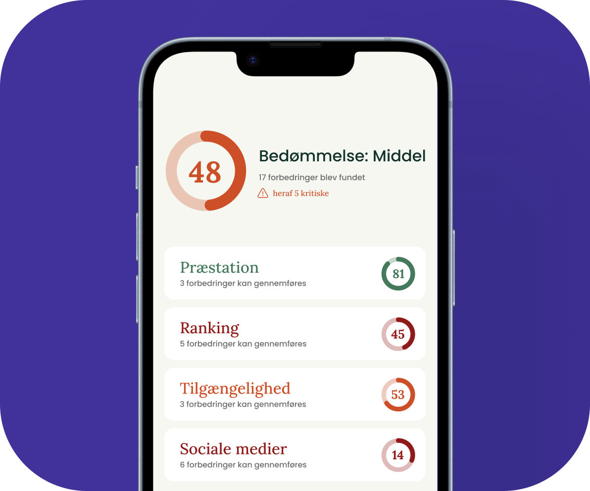 Hvad fungerer rigtig godt, og hvad kan du justere? Lad os hjælpe dig med at finde ud af, hvad der gør din virksomhed unik og finde tricks til at gøre din hjemmeside endnu bedre.