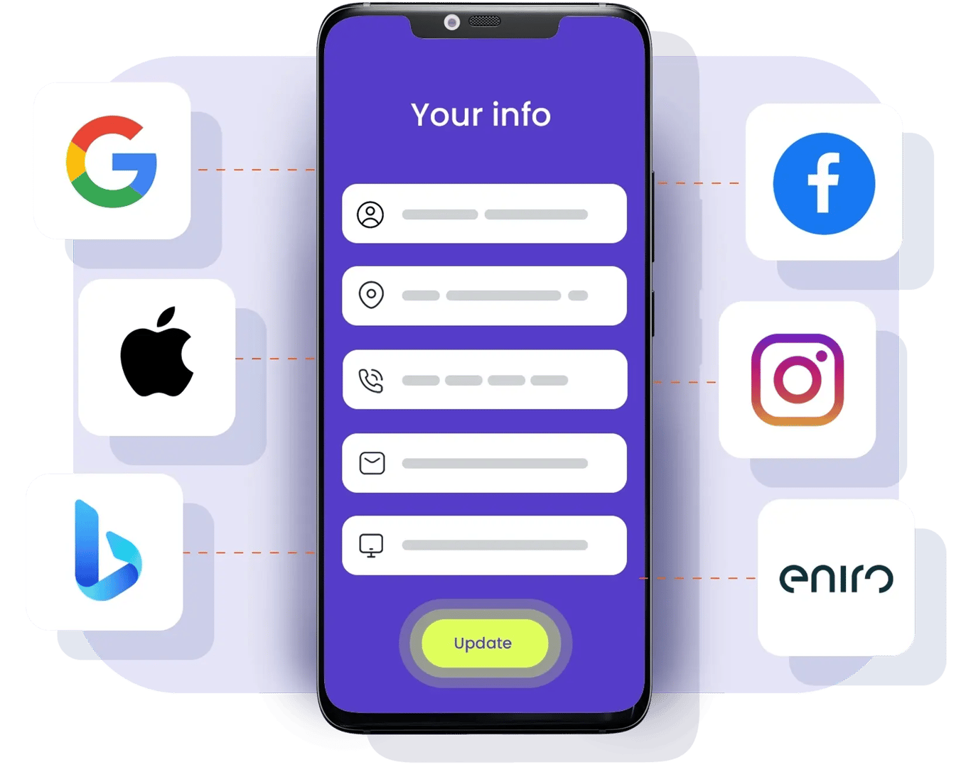 Ta kontroll över ditt företags information Vi samlar dina omdömen Din närvaro på över 35 plattformar
