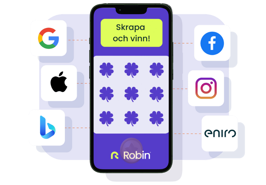 Skrapa lotten direkt i mobilen eller datorn Se om du vinner Har du skrapat fram tre likadana Robin-loggor i samma färg? Grattis, du är en av våra vinnare! Vi kommer inom kort kontakta dig på telefon eller mejl för att komma igång